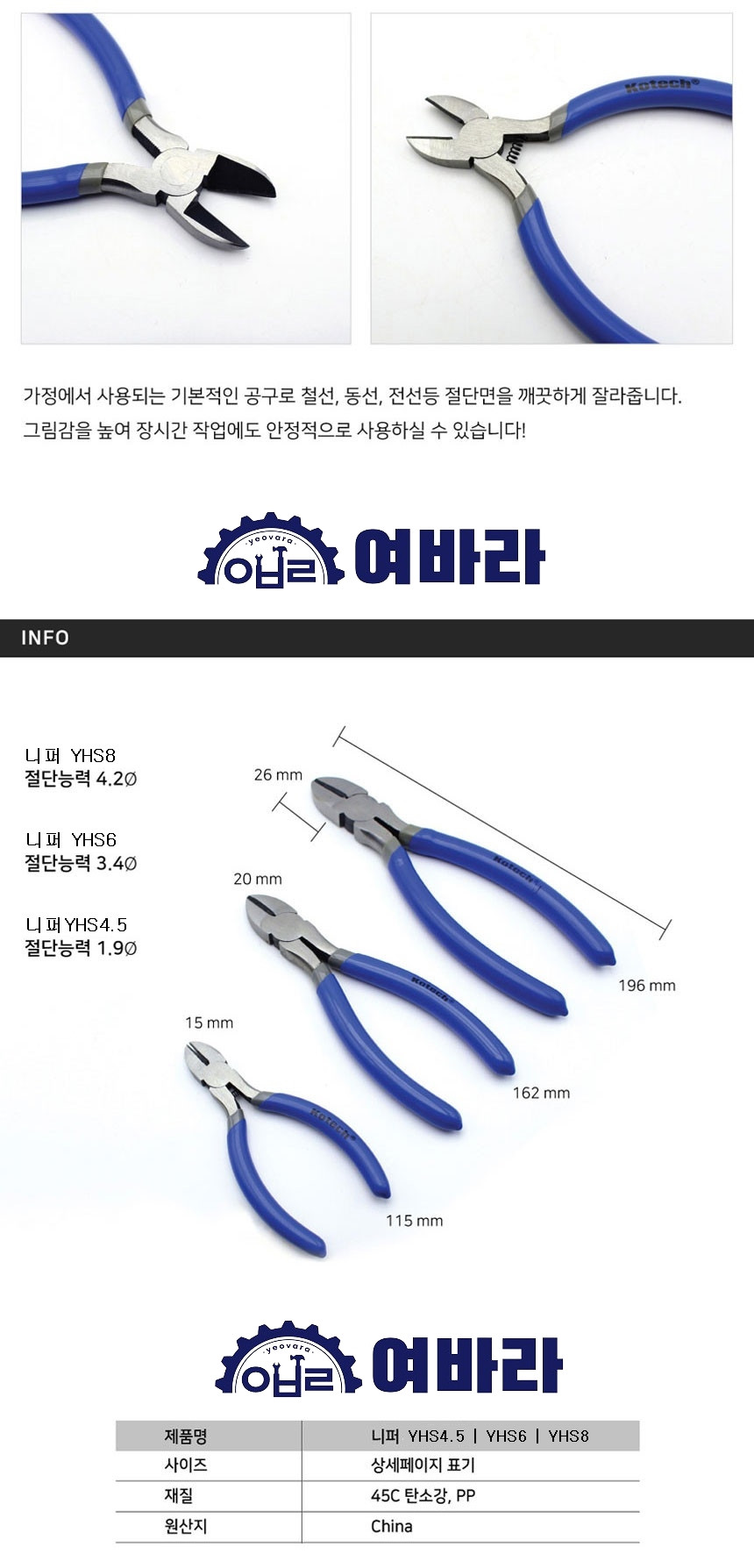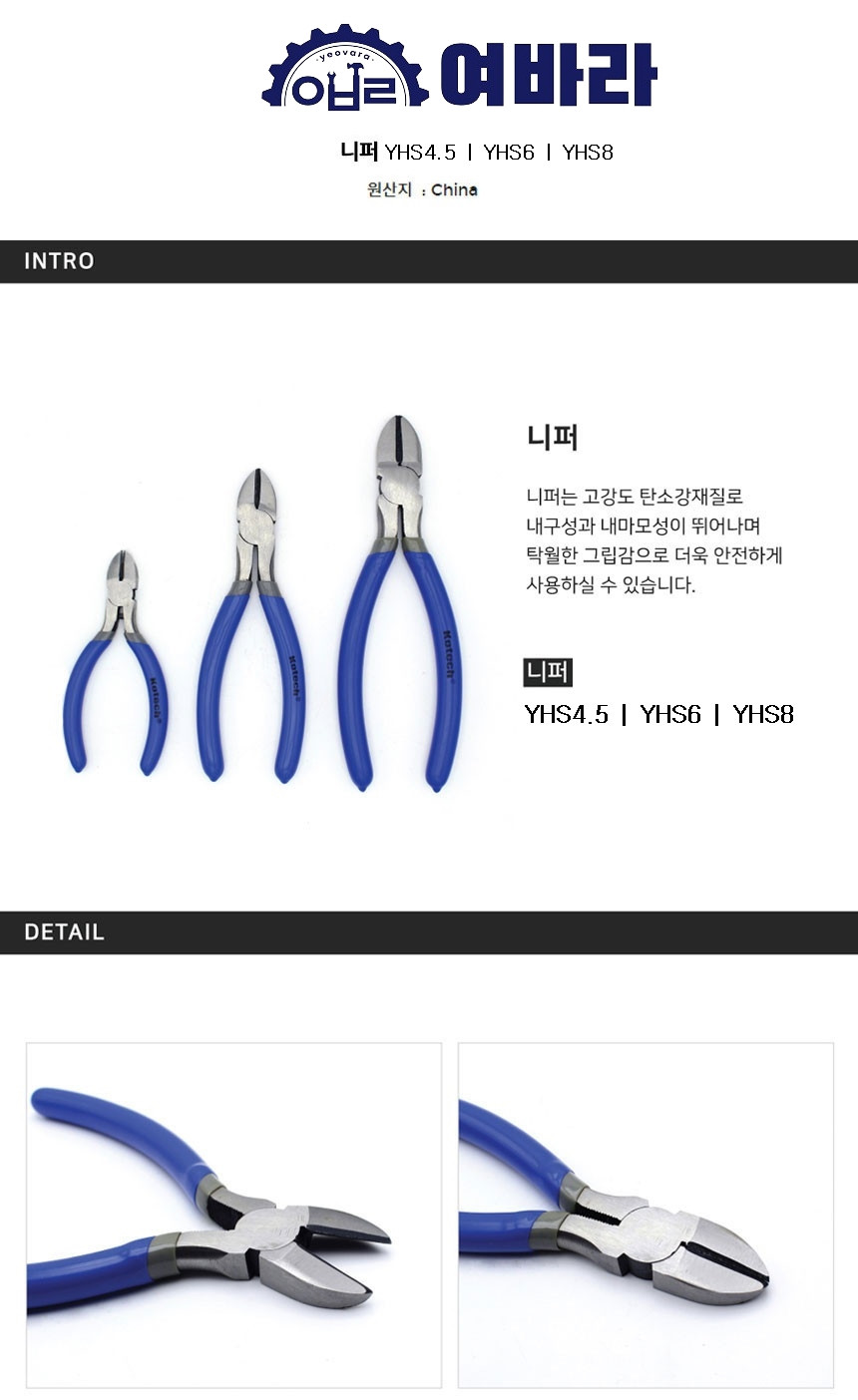 니퍼 공구 철사 컷팅 YHS4.5 전선 여바라 미니니퍼 공예용 탄소강 절단