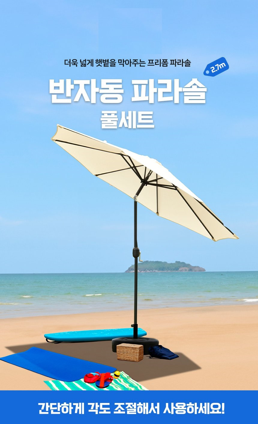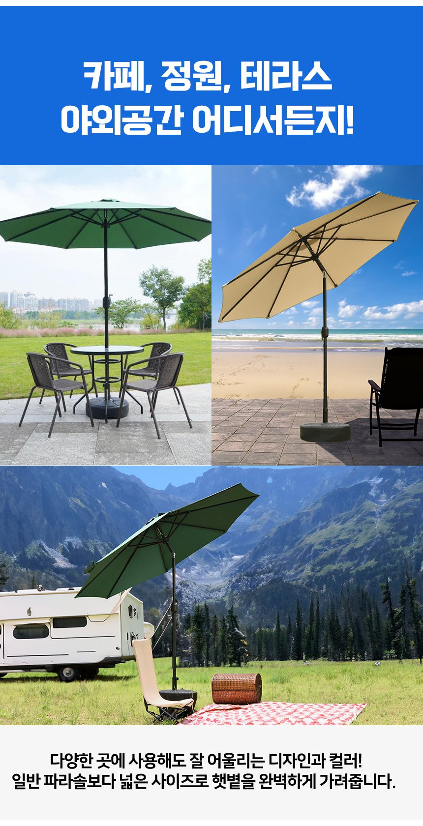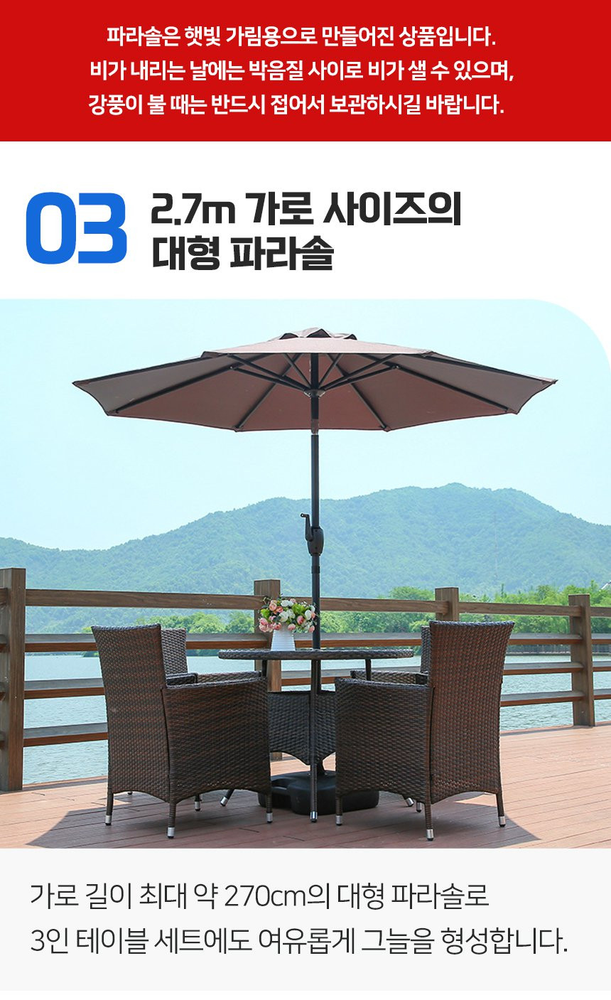 테이블 테라스 카페 야외 파라솔 2.7M 캠핑 세트 파라솔 각도조절 여바라