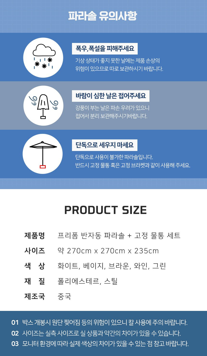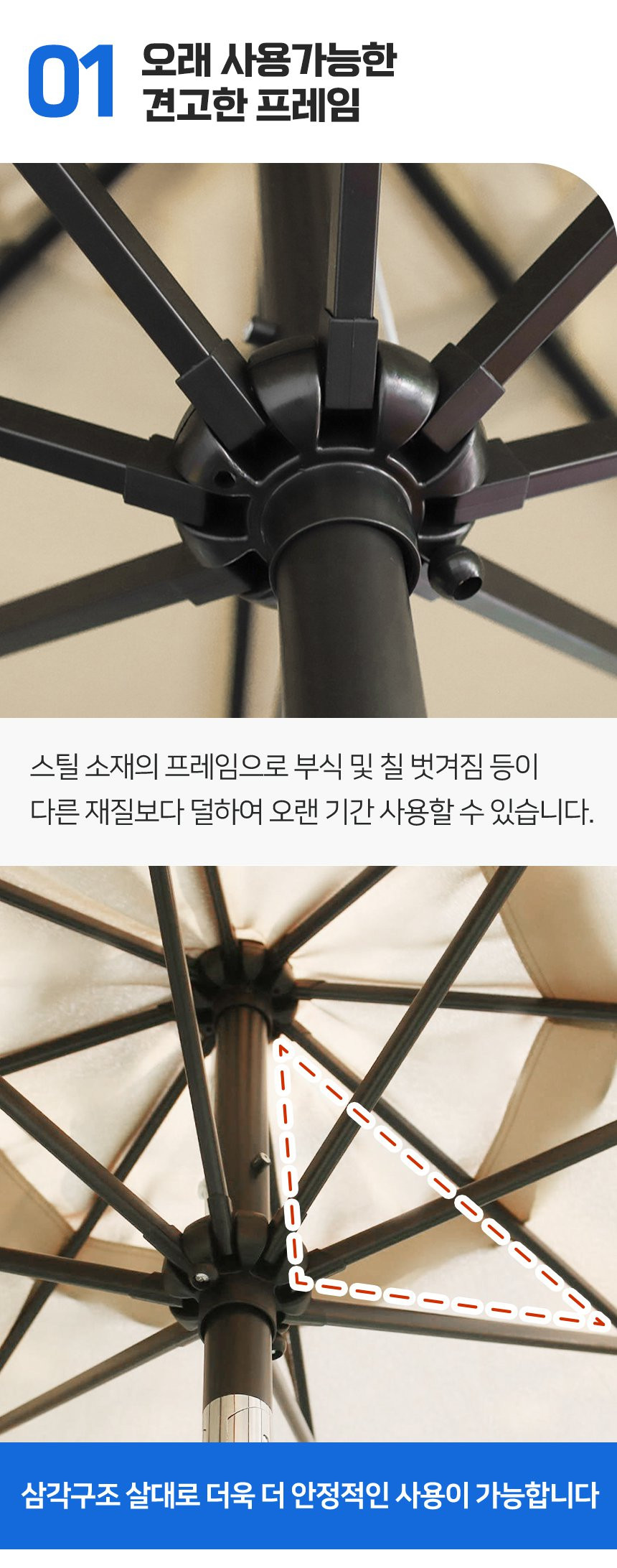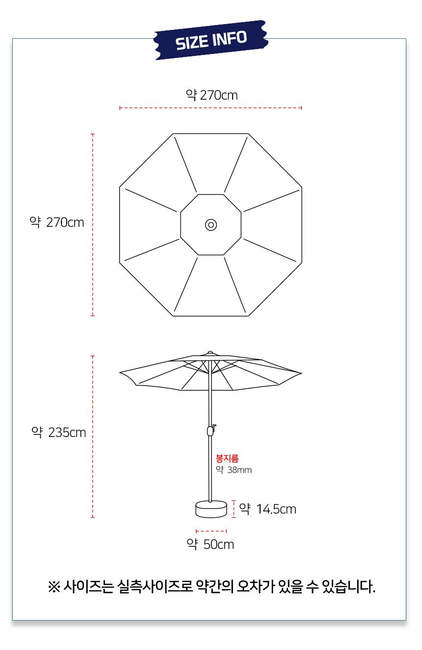 테이블 테라스 카페 야외 파라솔 2.7M 캠핑 세트 파라솔 각도조절 여바라