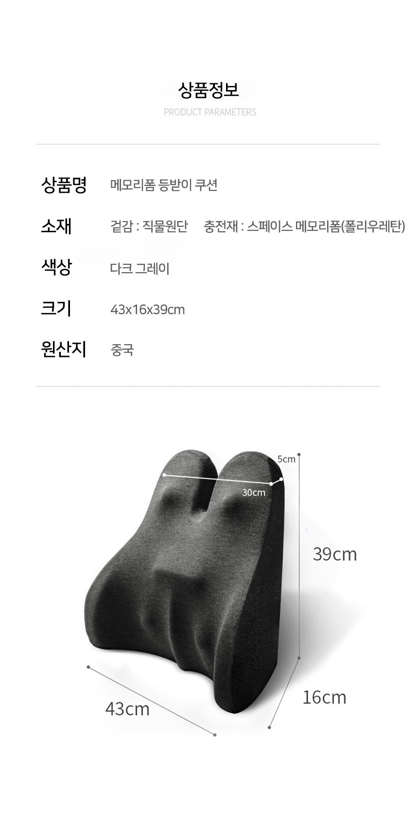 학교 사무실의자 허리받침 등쿠션 메모리폼 학생 등받이 바른자세 여바라