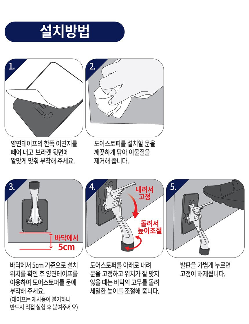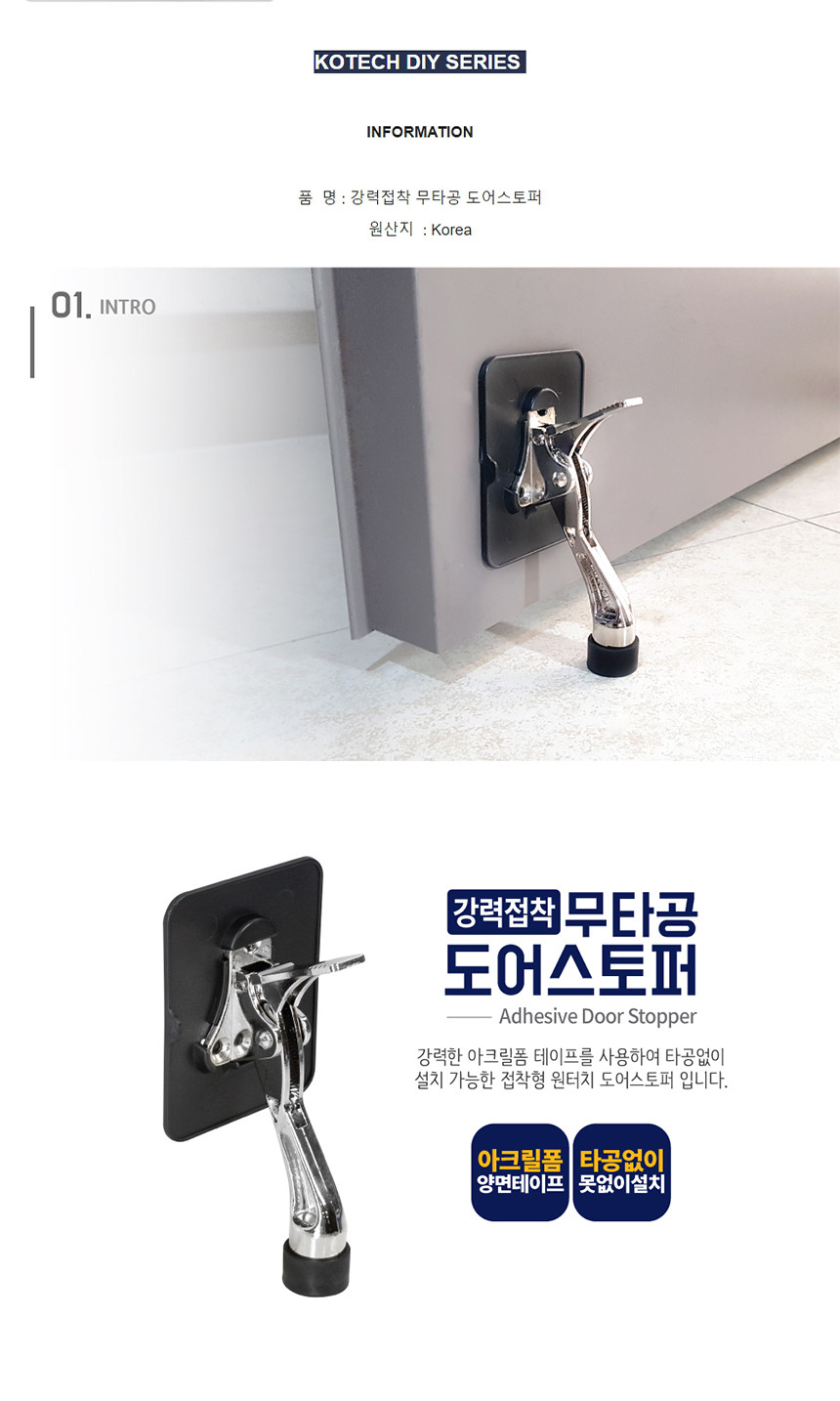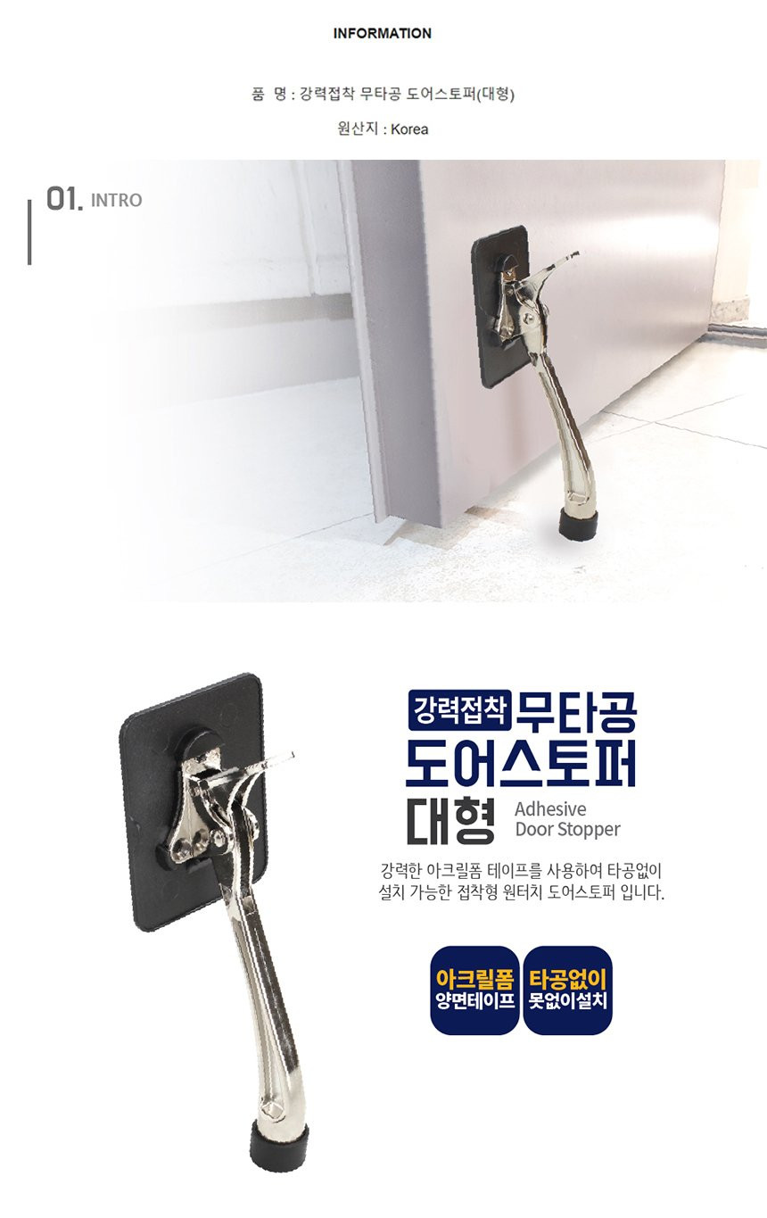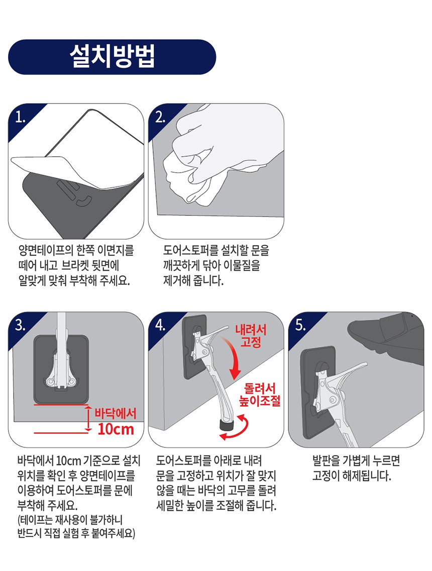무타공 출입문 도어 스토퍼 국산 현관 원터치 말발굽 부착식 고정 여바라