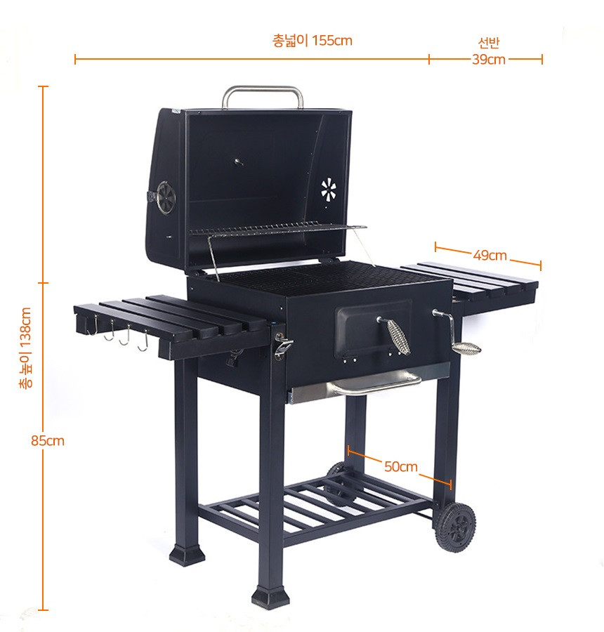 야외 바베큐 숯불 그릴 캠핑 펜션 불판 여바라 특대형 이동식 양선반 화로대