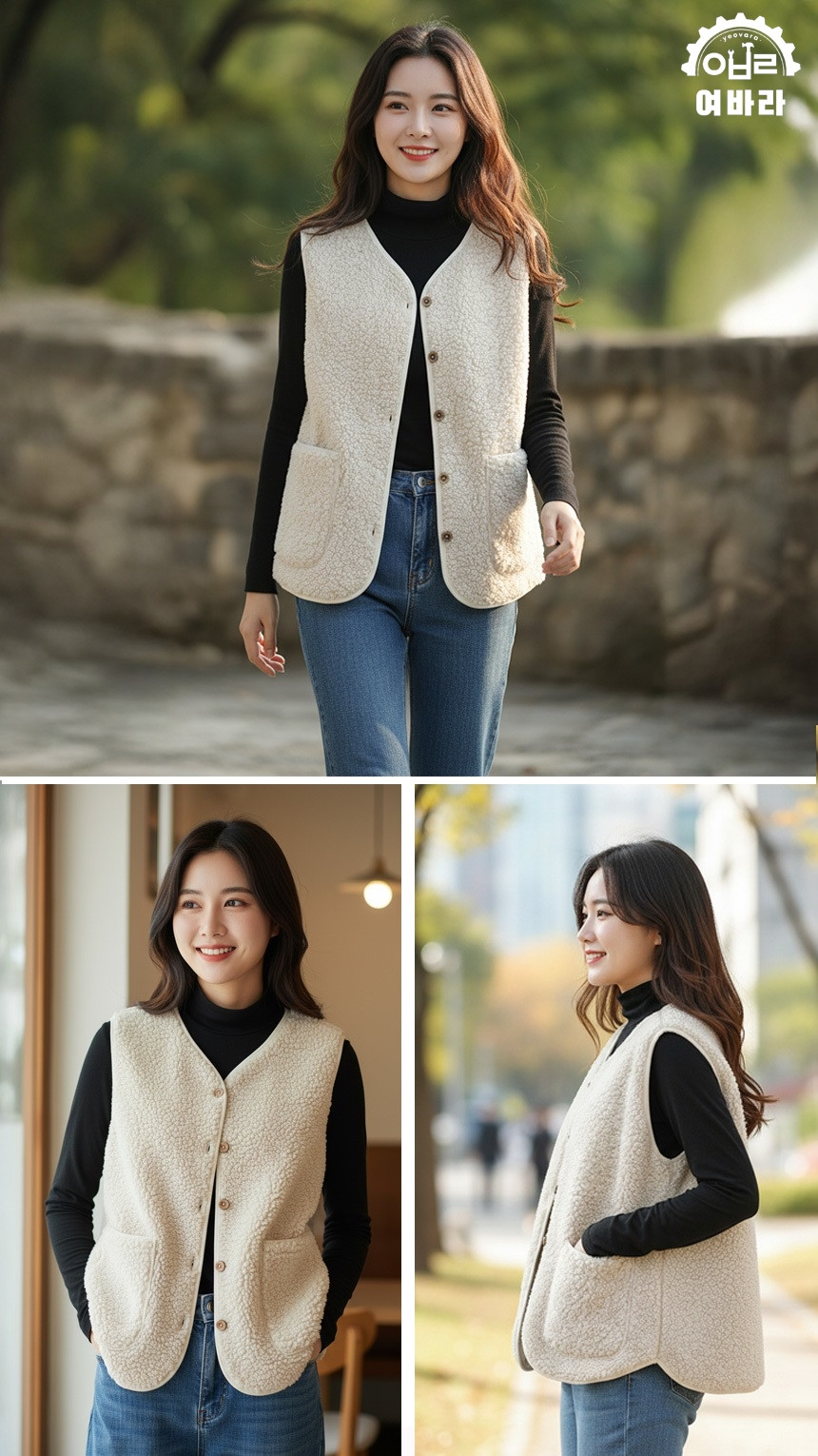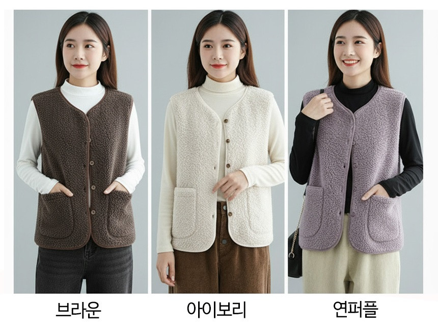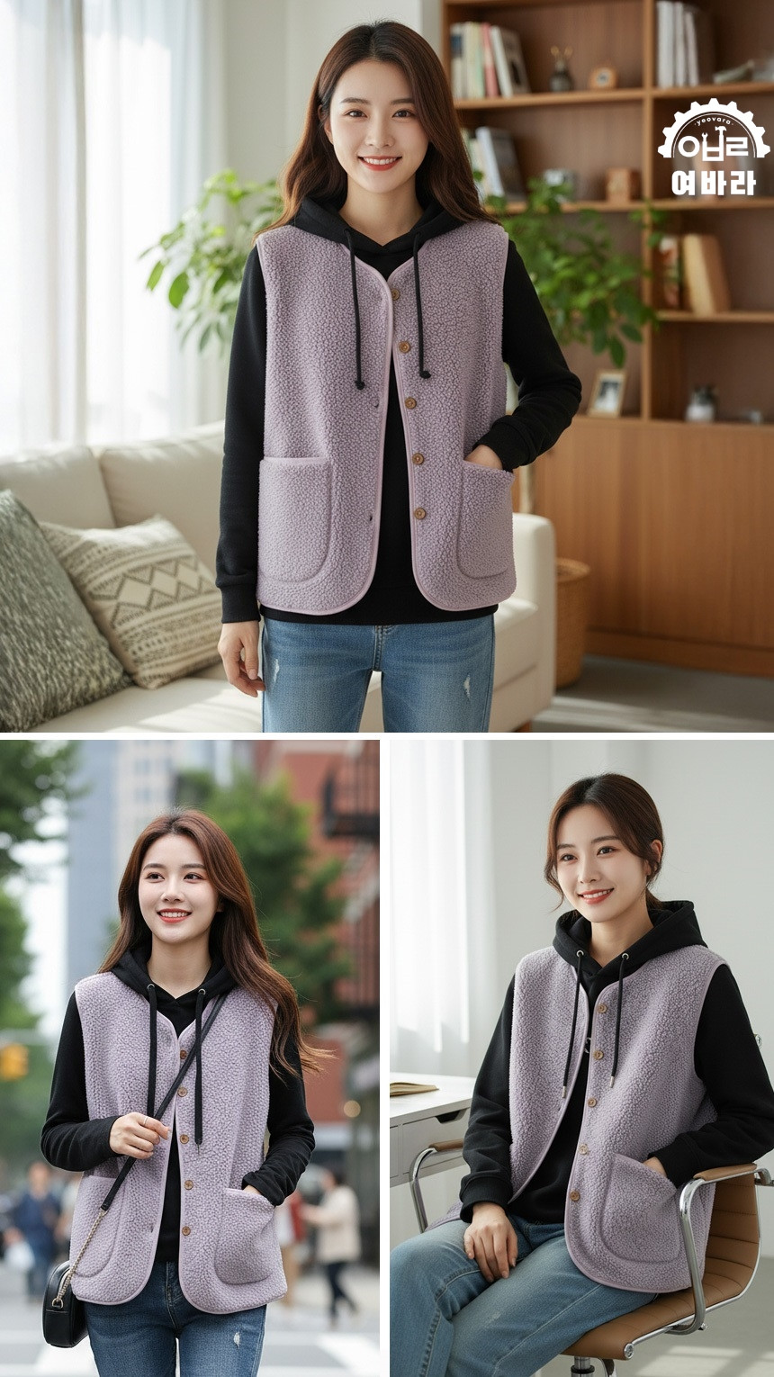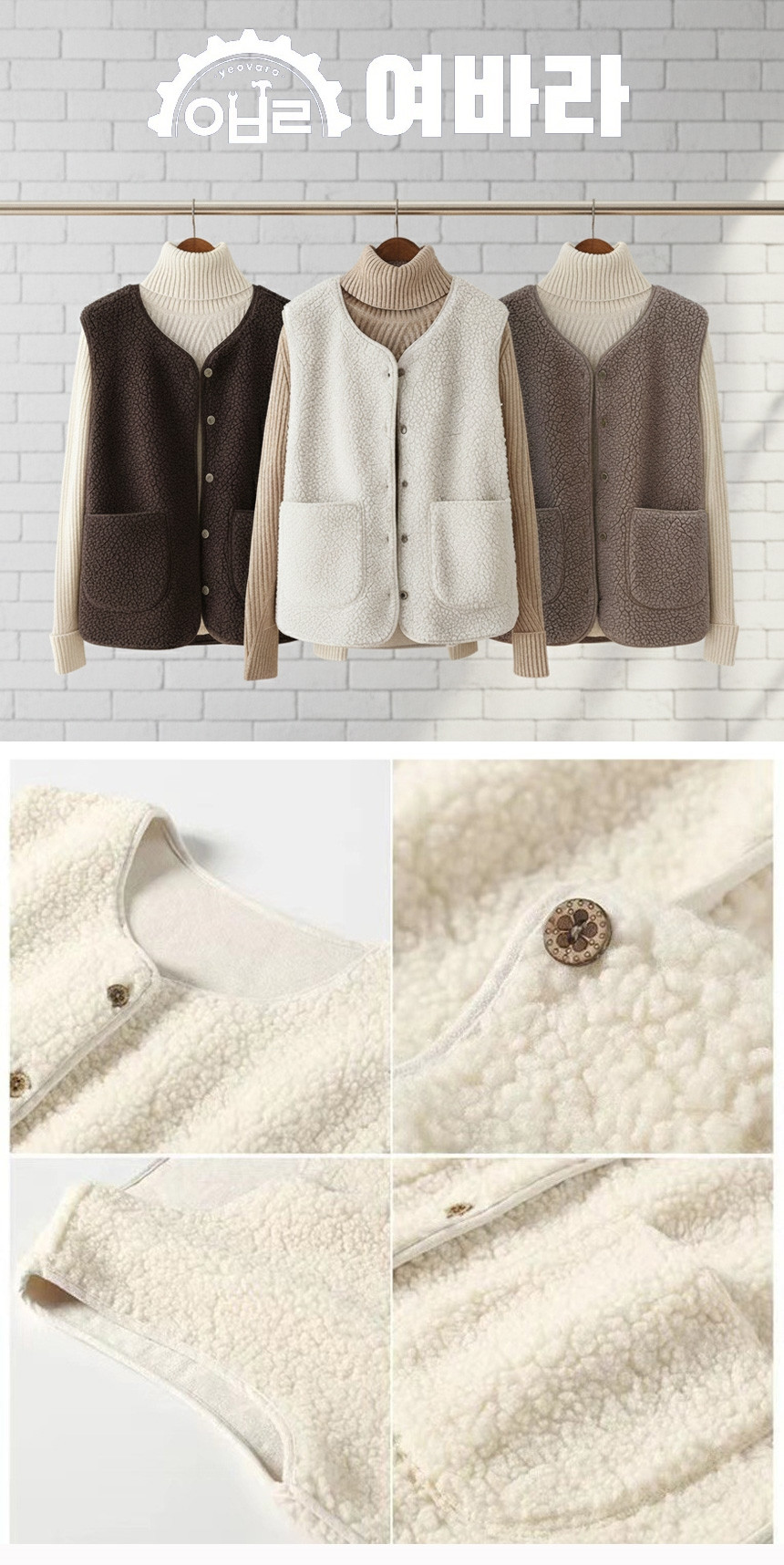 여바라 뽀글이 여성 수면조끼 조끼 사무실 실내 단추