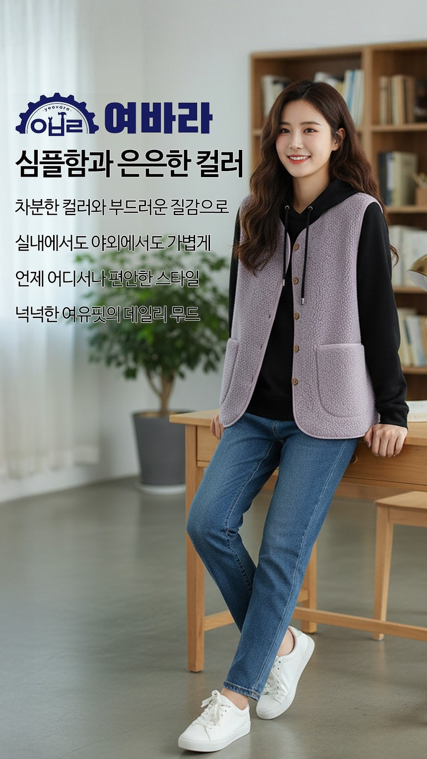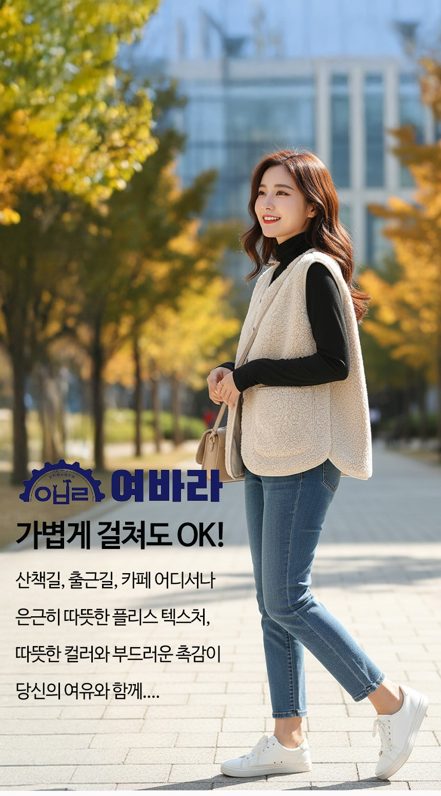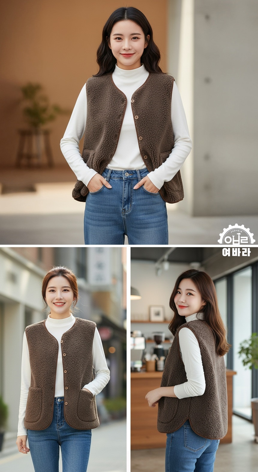 여바라 뽀글이 여성 수면조끼 조끼 사무실 실내 단추