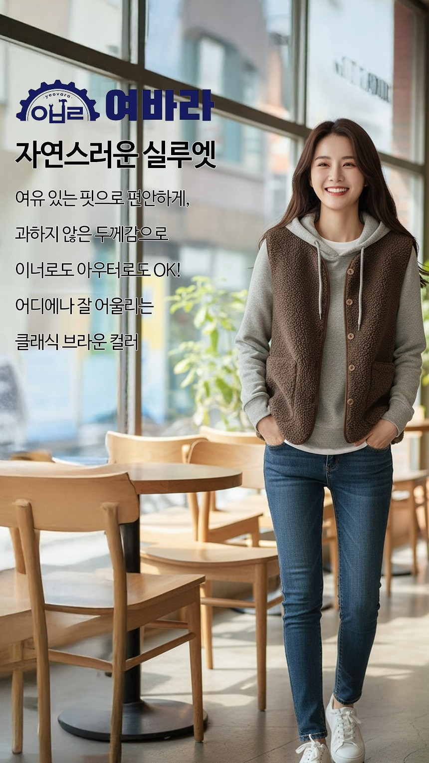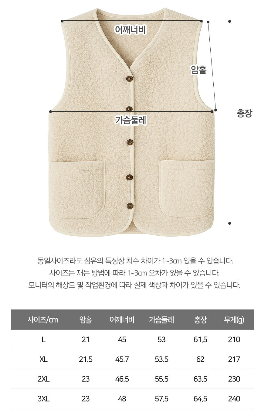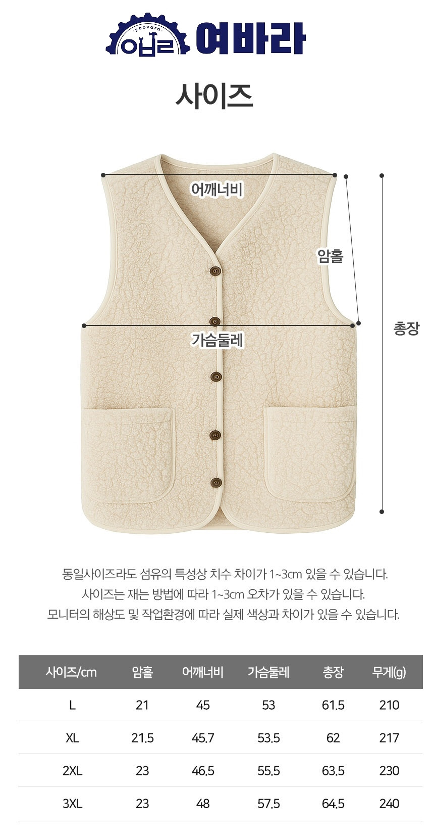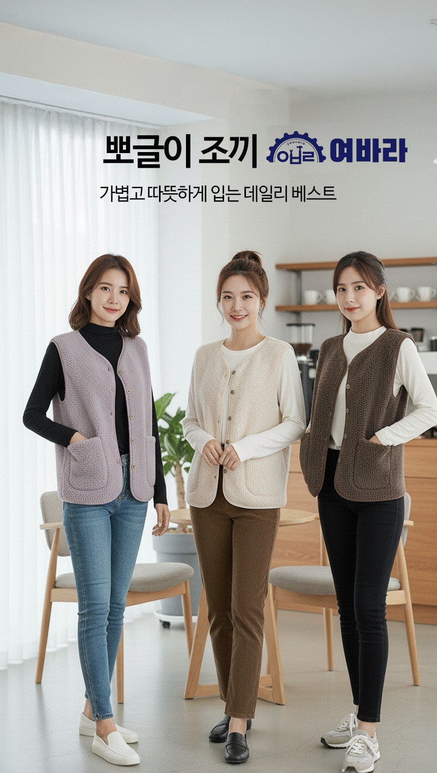 여바라 뽀글이 여성 수면조끼 조끼 사무실 실내 단추
