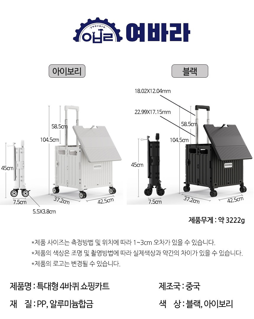 쇼핑카트 마트 카트 특대형 여바라 폴딩 장바구니 접이식