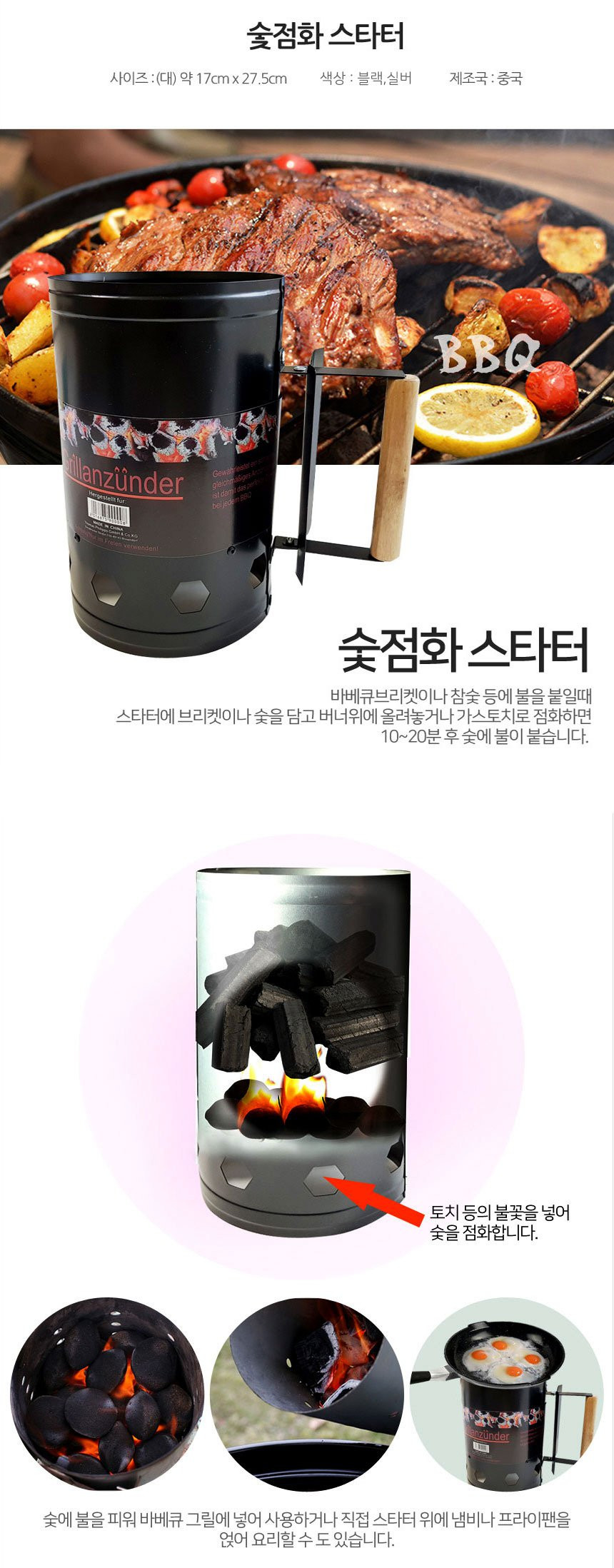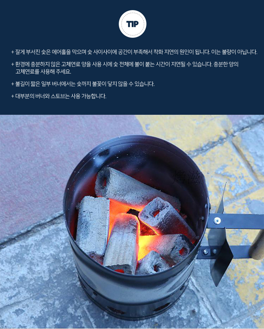 점화통 불피우기 숯스타터 숯피우기 블랙 착화통 점화기 낚시 캠핑 여바라